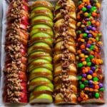 These Easy Sheet Pan Caramel Apples are perfect for serving a crowd without the mess of individually dipping each apple. Sweet, buttery caramel coats crisp apples, and you can customize with your favorite toppings for a festive treat everyone will love.