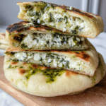 Feta Spring Flatbreads are a delightful combination of fluffy dough filled with a savory mixture of feta, spinach, and fresh mint. These easy-to-make flatbreads make a perfect snack or light meal, bursting with fresh flavors and creamy textures.