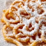 Keywords: funnel cake donuts, carnival donuts, fried donuts, air fryer donuts, easy dessert, powdered sugar donuts