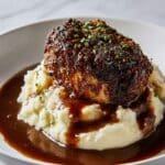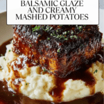 This Garlic Herb Chicken recipe features juicy, seared chicken breasts infused with fresh garlic, parsley, and thyme, served on a bed of creamy mashed potatoes and topped with a rich, tangy balsamic glaze. A perfect combination of savory and slightly sweet flavors, this dish is ideal for a comforting yet elegant dinner.
