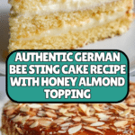 This German Bee Sting Cake (Bienenstich) features a soft yeast dough base topped with a rich honey-almond caramelized crust. Filled with a luscious vanilla custard and whipped cream mixture, this traditional dessert blends crunchy, creamy, and fluffy textures for a delightful treat.