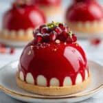 These Glossy Pomegranate Mousse Domes combine a light, tangy mousse with a delicate sponge base, all wrapped in a shiny, vibrant mirror glaze. Perfect for impressing guests or enjoying a special treat at home.