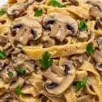 9. Step 9: Serve the Stroganoff immediately over the cooked noodles or alongside your preferred base. Garnish with chopped fresh parsley.