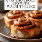 - Finish and Serve: Drizzle the cooled syrup over the baked cinnamon roll-ups. Sprinkle the remaining walnut mixture on top for an added crunch and flavor. Serve warm or at room temperature for a delightful treat.