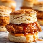 Hot Honey Chicken Biscuits combine crispy, flavorful fried chicken with fluffy homemade biscuits and a sweet-spicy honey drizzle. This dish is perfect for breakfast, brunch, or a satisfying snack any time of the day.