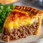 Keywords: cheeseburger pie, homemade pie, ground beef pie, baked cheeseburger, comfort food, savory pie recipe