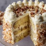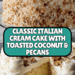 Keywords: Italian Cream Cake, coconut cake, cream cheese frosting, pecan cake, layered cake, moist cake, classic dessert