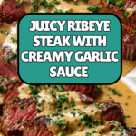 This Juicy Steak with Creamy Garlic Sauce recipe features perfectly seared ribeye steaks cooked with aromatic herbs and butter, topped with a luscious, cheesy garlic cream sauce. It’s a simple yet indulgent dish that elevates a classic steak dinner with a rich, flavorful sauce.