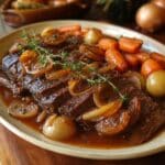 Store any leftovers in an airtight container in the refrigerator for up to 3 days. Reheat gently on the stovetop or in the microwave, adding a splash of beef broth if the sauce has thickened. This pot roast can also be frozen for up to 3 months; thaw overnight in the refrigerator before reheating.