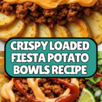Loaded Fiesta Potato Bowls are a hearty and flavorful meal combining crispy roasted potatoes, savory taco-seasoned beef, and creamy cheddar cheese sauce. Perfect for a cozy dinner that feels festive and satisfying.