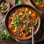 A hearty and flavorful Mediterranean Lentil Soup that combines tender lentils, aromatic spices, and fresh vegetables for a comforting and nutritious meal perfect for any day.