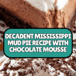This decadent Mississippi Mud Pie features a rich chocolate cookie crust, a luscious fudge layer, a light and airy chocolate mousse, and a fluffy whipped cream topping. Perfect for chocolate lovers, this pie combines multiple textures and deep chocolate flavors for an indulgent dessert experience.