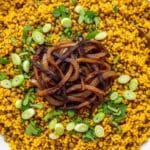 Keywords: Mujadara, Lentils and Rice, Middle Eastern, Vegetarian, Caramelized Onions, Healthy Comfort Food