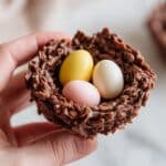 Keywords: No bake dessert, bird nests, chocolate treats, Easter candy, Rice Krispies dessert, peanut butter chocolate, kid-friendly snack