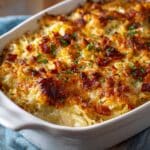 - Add Topping: In another bowl, mix together the 3 tablespoons melted butter, shredded sharp cheddar cheese, and coarsely crushed Ritz crackers. Sprinkle this crunchy topping evenly over the creamy layer.