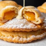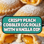 Delight in these crispy Peach Cobbler Egg Rolls filled with a sweet, cinnamon-spiced peach mixture, perfectly fried until golden and served with a creamy vanilla bean dipping sauce. A fun and inventive twist on classic peach cobbler that is easy to prepare and deliciously indulgent.