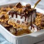 - Add candy layer: Sprinkle half of the chopped peanut butter cups evenly over the peanut butter layer to add a crunchy, candy flavor.
