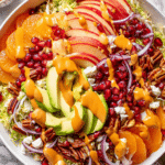 This vibrant Persimmon Salad combines fresh, shredded Brussels sprouts with sweet persimmon wedges, crisp apple slices, creamy avocado, tangy goat cheese, crunchy pecans, and optional pomegranate seeds. Tossed with a homemade persimmon-based dressing infused with cinnamon honey and apple cider vinegar, this salad offers a delightful balance of sweet, savory, and tart flavors—perfect for a refreshing and nutritious meal or side dish.
