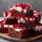 Red velvet brownies combine the rich, fudgy texture of classic brownies with the tangy swirl of cream cheese, creating a dessert that’s both visually stunning and delicious. Perfect for chocolate lovers who want a twist on traditional brownies.
