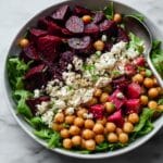 Keywords: chickpea salad, roasted beet salad, vegetarian salad, Mediterranean salad, healthy lunch, feta cheese salad