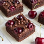 Keywords: chocolate cherry brownies, roasted cherries, fudgy brownies, chocolate chip brownies, dessert recipe