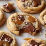 Keywords: salted caramel cookies, caramel chip cookies, homemade cookies, sweet and salty cookies, easy dessert recipe