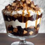 Keywords: trifle, devil’s food cake, caramel, toffee, whipped cream, layered dessert, easy dessert, chocolate cake dessert