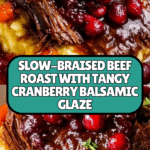 This Slow-Braised Beef Roast with Cranberry Balsamic Glaze is a succulent and flavorful dish where a tender beef chuck roast is seared and then slow-cooked in a rich balsamic and cranberry sauce. Infused with fresh thyme, carrots, and garlic, the roast becomes melt-in-your-mouth tender while the tangy-sweet glaze made from cranberries and balsamic vinegar adds a perfect balance of flavors. Ideal for comforting weekend dinners or special occasions.