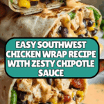 This Southwest Chicken Wrap is a flavorful and satisfying meal packed with spicy marinated chicken, fresh vegetables, and a creamy chipotle sauce. Perfect for a quick lunch or a casual dinner, these wraps bring a delicious mix of textures and tastes wrapped in a warm tortilla.