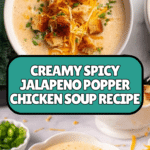 This Spicy Jalapeno Popper Chicken Soup is a creamy, flavorful dish inspired by the popular appetizer. Combining shredded chicken, smoky bacon, melty cheeses, and spicy jalapeños, this comforting soup is perfect for warming up and satisfying your craving for a deliciously rich and spicy meal.