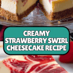 This Strawberry Swirl Cheesecake recipe features a creamy, smooth cheesecake base with a delightful homemade strawberry sauce swirled throughout for a beautiful marbled effect. With a crunchy graham cracker crust and a luscious, tangy strawberry topping, this dessert is perfect for special occasions or an indulgent treat.