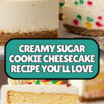 Keywords: sugar cookie cheesecake, creamy cheesecake, sugar cookie crust, easy cheesecake recipe, dessert recipes, comforting dessert