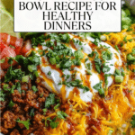 Keywords: sweet potato taco bowl, roasted sweet potatoes, taco seasoning, ground beef taco bowl, healthy taco bowl, easy weeknight dinner, Mexican-inspired dish