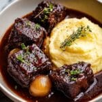 Keywords: braised short ribs, garlic mashed potatoes, beef short ribs recipe, oven braised ribs, comfort food, hearty dinner