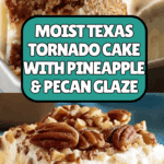 Texas Tornado Cake is a moist and flavorful dessert featuring a tender cake base made with crushed pineapple and pecans, topped with a rich, buttery brown sugar glaze infused with vanilla. This Southern classic combines sweet and nutty flavors with a gooey topping that soaks into the cake, making it irresistibly delicious and perfect for any occasion.