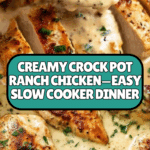 A creamy, flavorful, and effortless dinner recipe featuring tender chicken breasts cooked in a rich ranch and cream of chicken soup sauce in a slow cooker. Perfect for busy weeknights, this Crock Pot Ranch Chicken is easy to prepare and pairs wonderfully with rice, potatoes, or noodles.