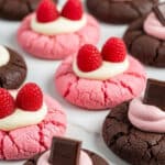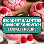 These Valentine Ganache Cookies combine rich chocolate and delicate pink dough with a luscious ganache center. Perfectly soft and adorned with festive toppings, they make a sweet treat for any celebration.